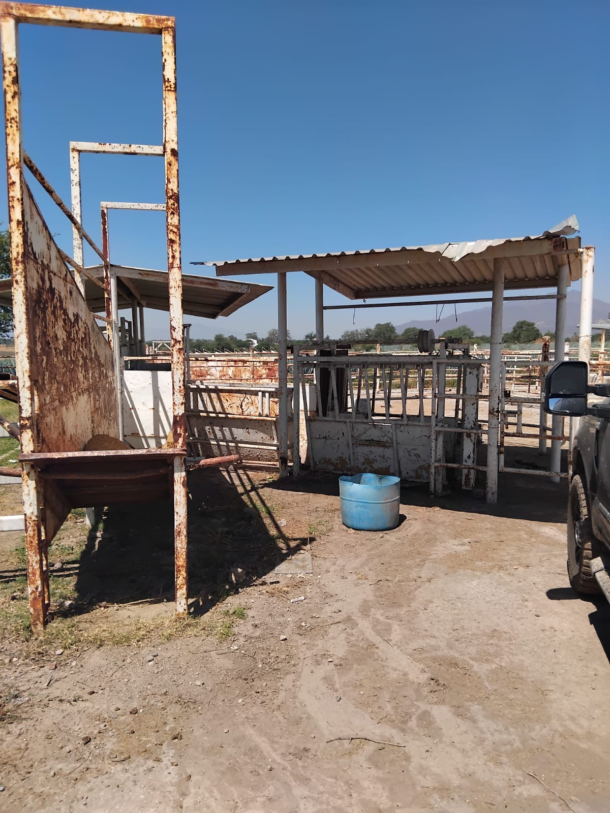 • Pasillo de manejo de ganado con trampa para vacunar y báscula para ganado (todo muy funcional)
