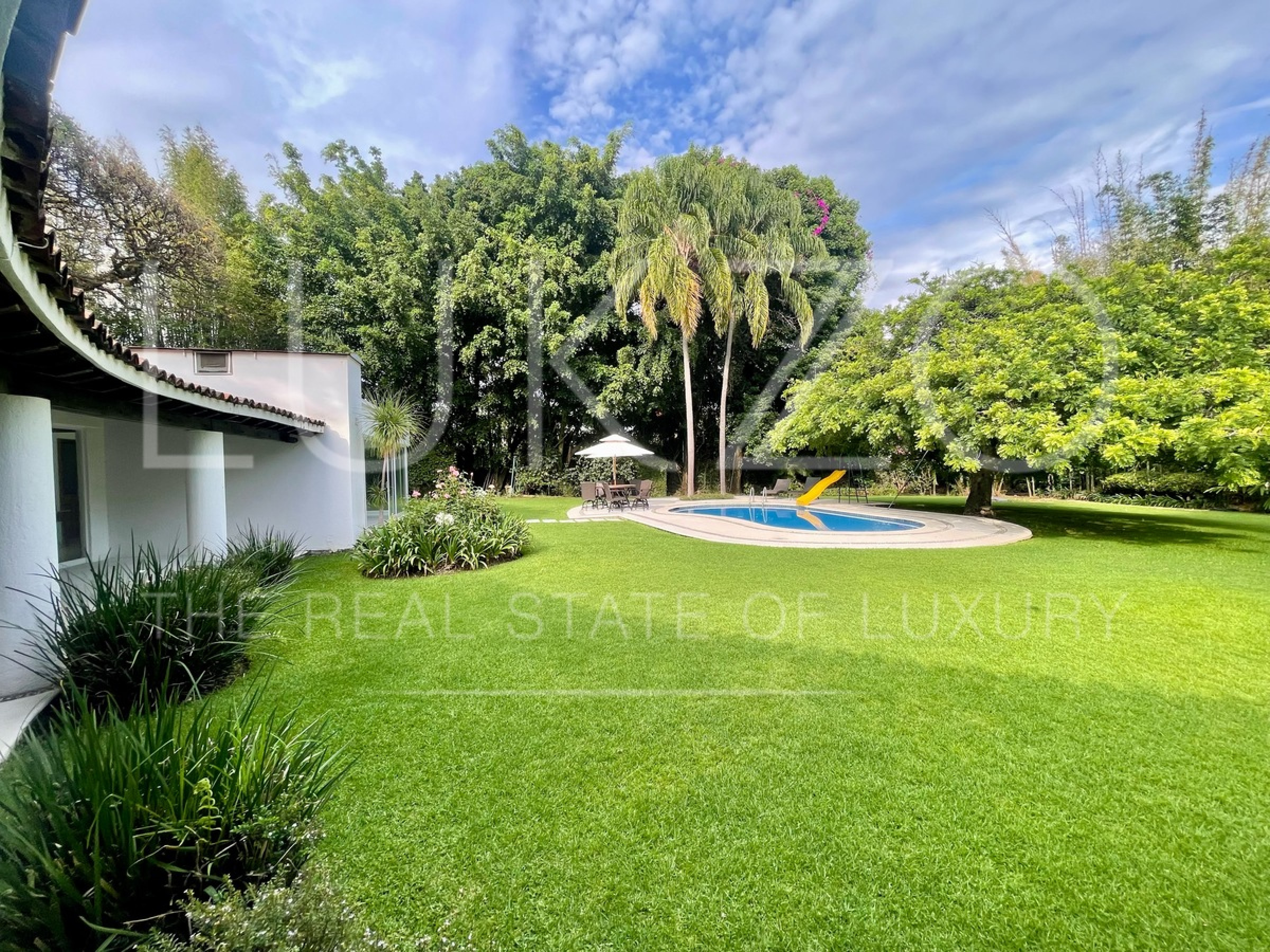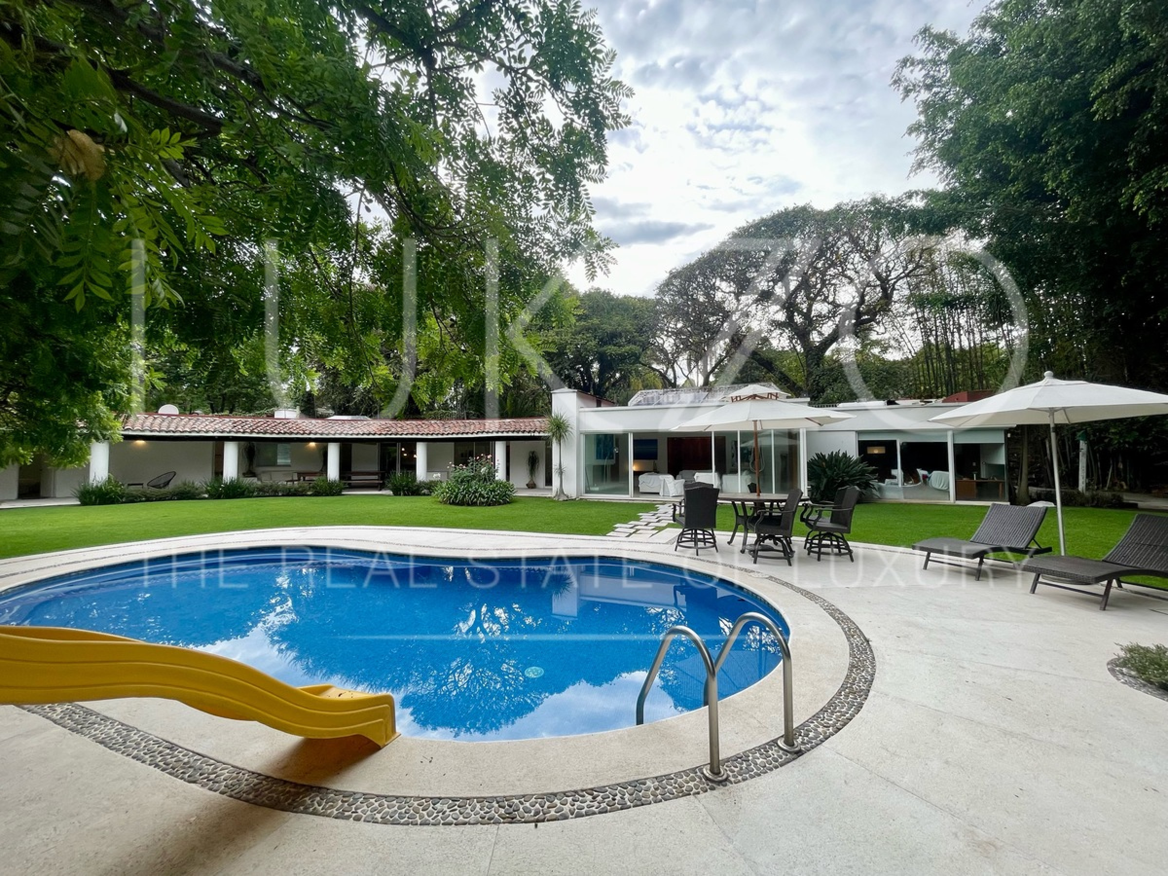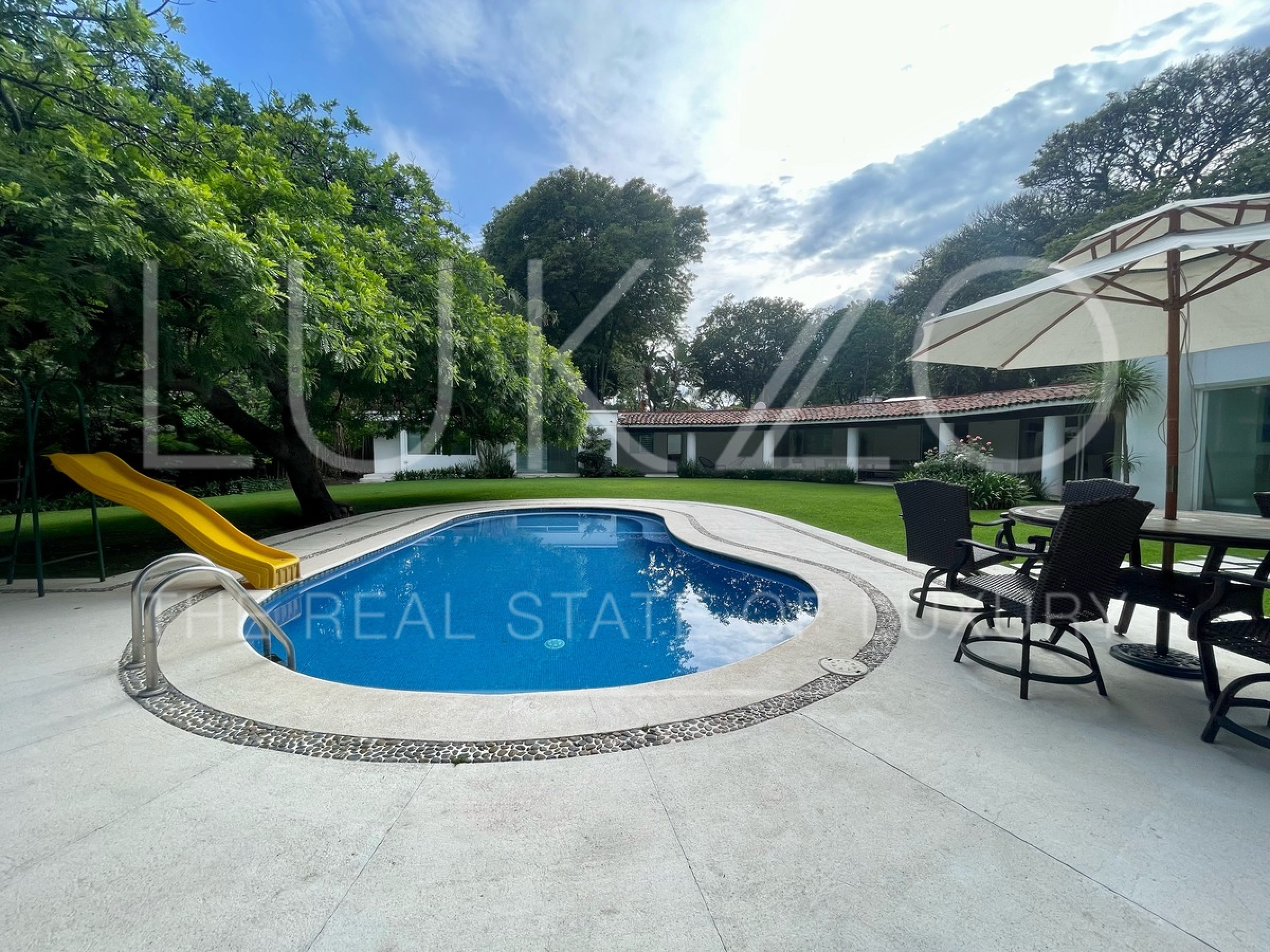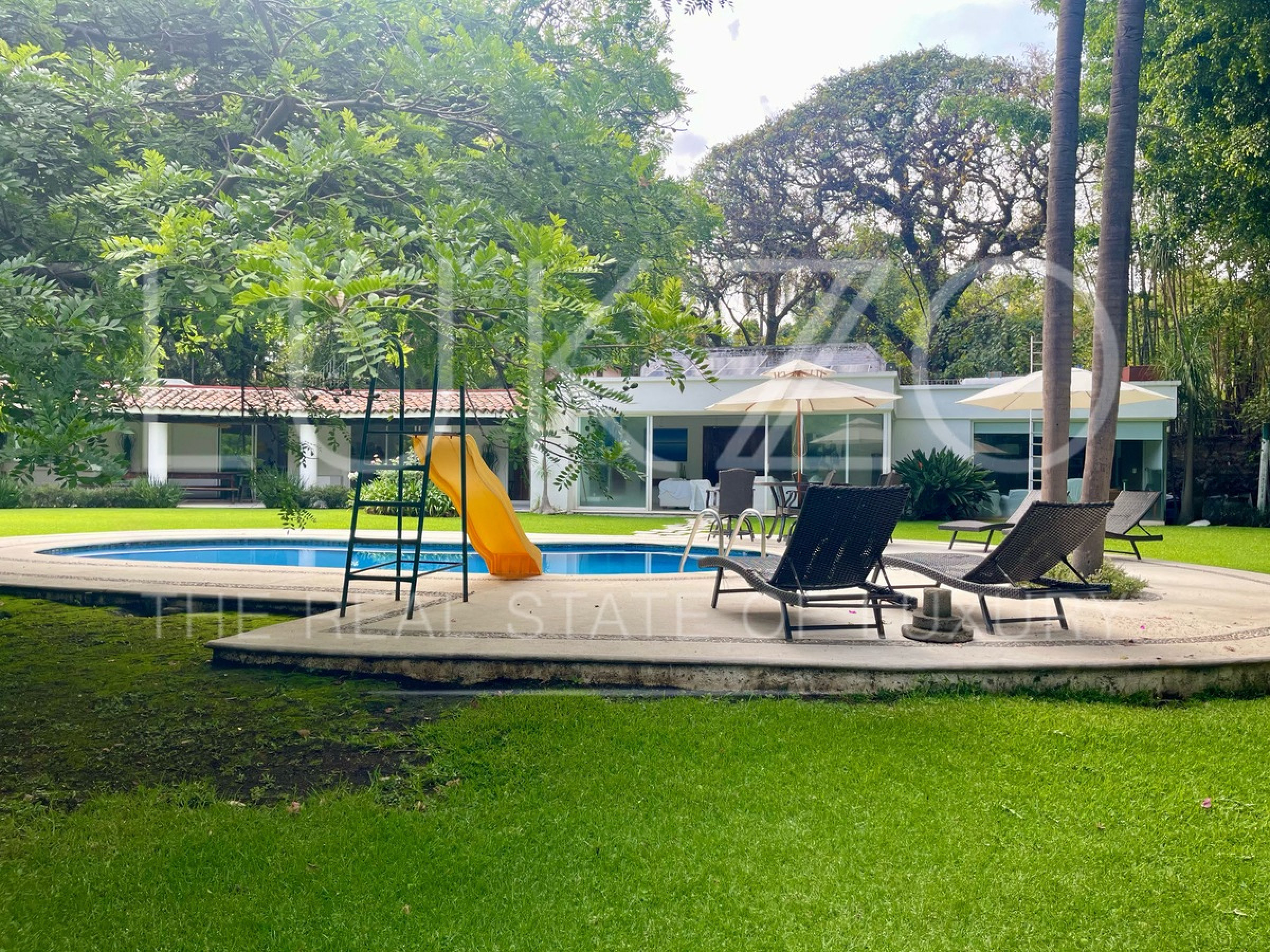 Escápate con familia y amigos a disfrutar tus fines de semana en está fresca casa de un nivel con alberca en Cuernavaca. Totalmente remodelada en 2001. Ubicada en Jardines de ahuatepec. Cuenta con 5 recamaras, 4 y medio baños. Doble seguridad: del fraccionamiento y de los cuidadores de la casa.