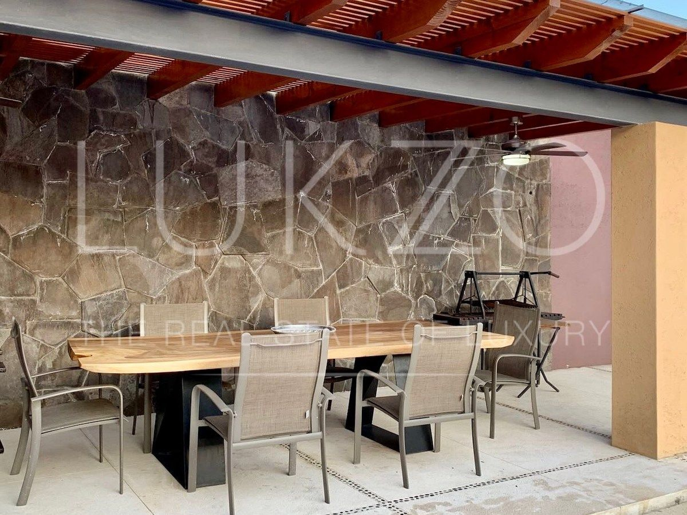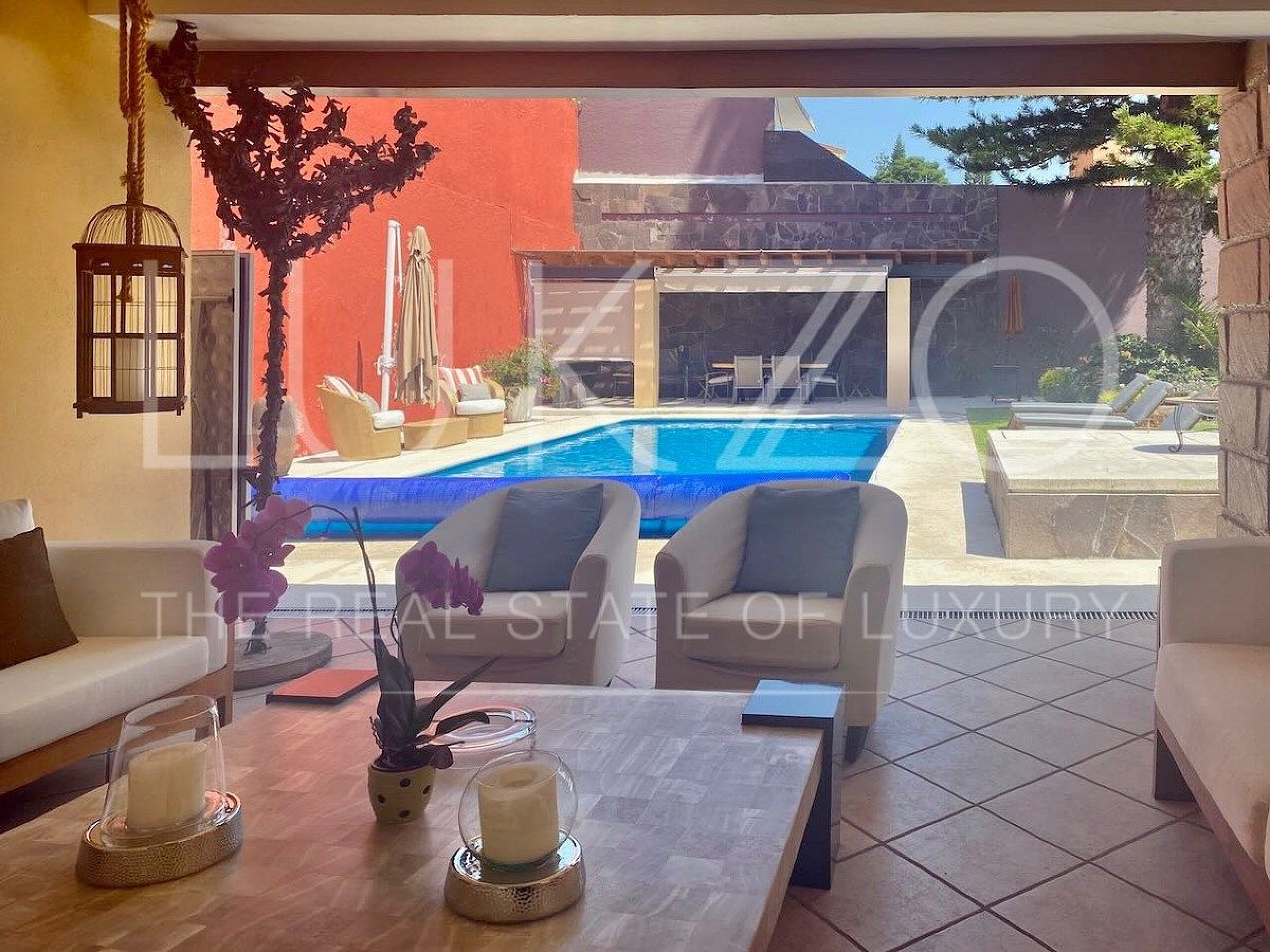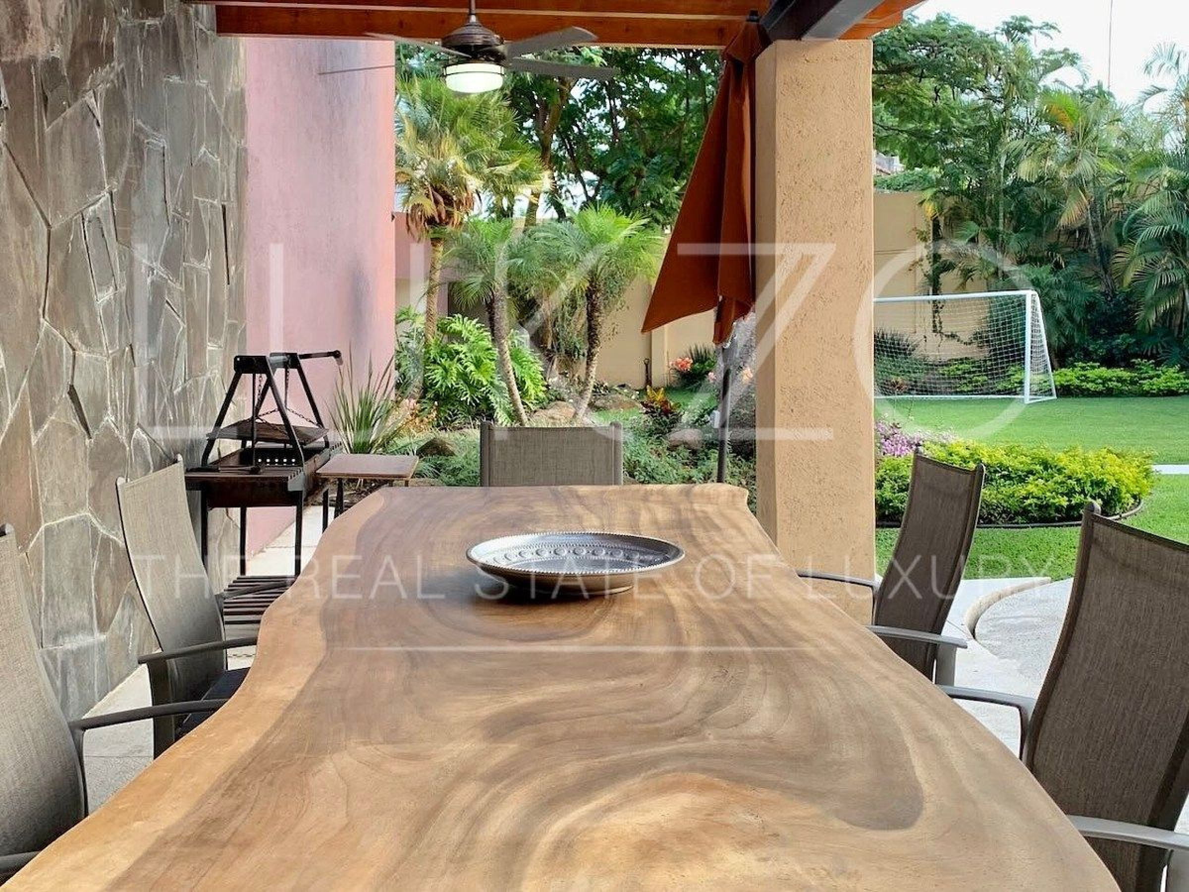 En el exterior encontrará jardines generosos, asador y una terraza para reuniones familiares. El estacionamiento cubre hasta tres autos y la propiedad ofrece vigilancia privada con portón eléctrico y gas estacionario, elementos que refuerzan la seguridad y la comodidad de la vivienda.
