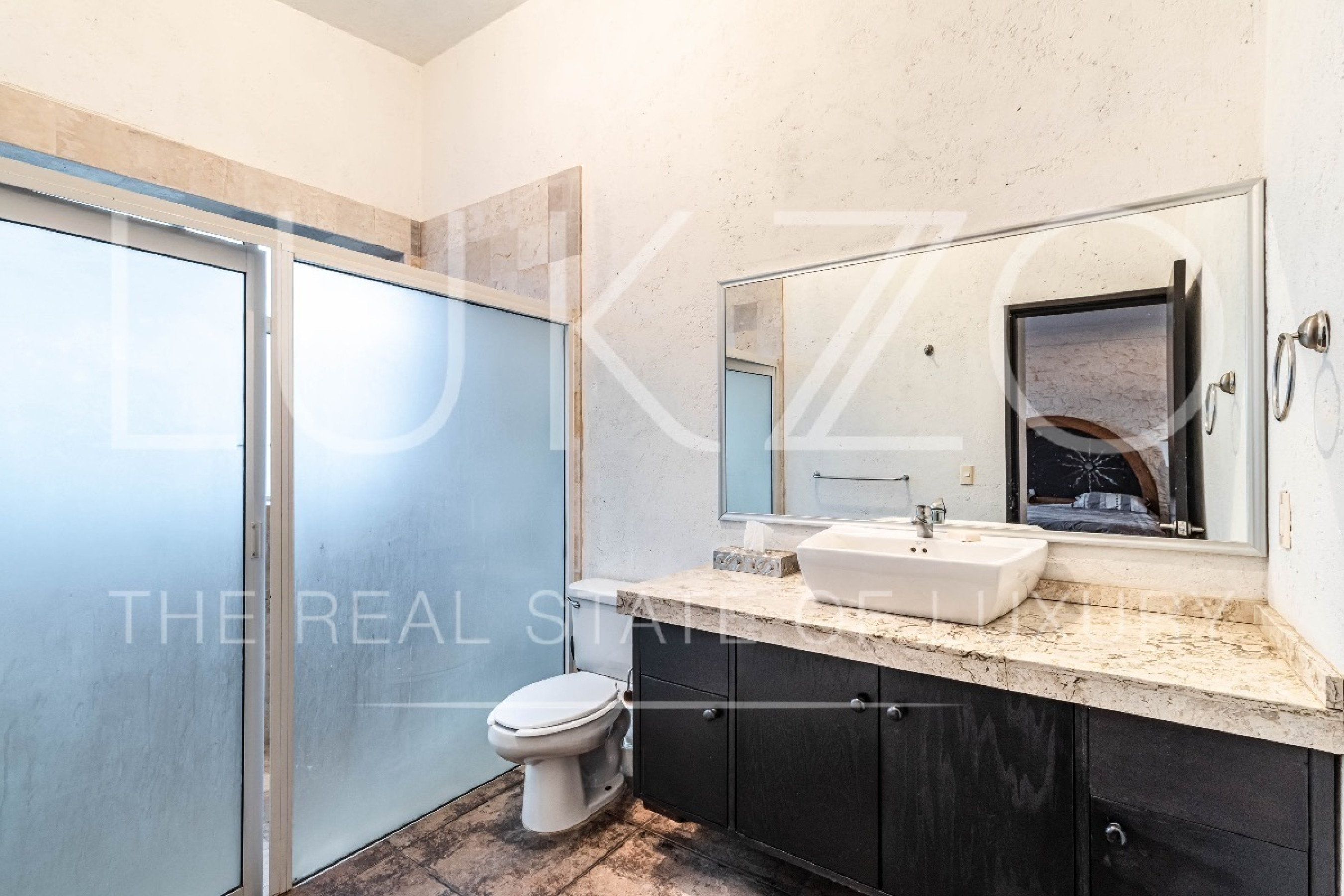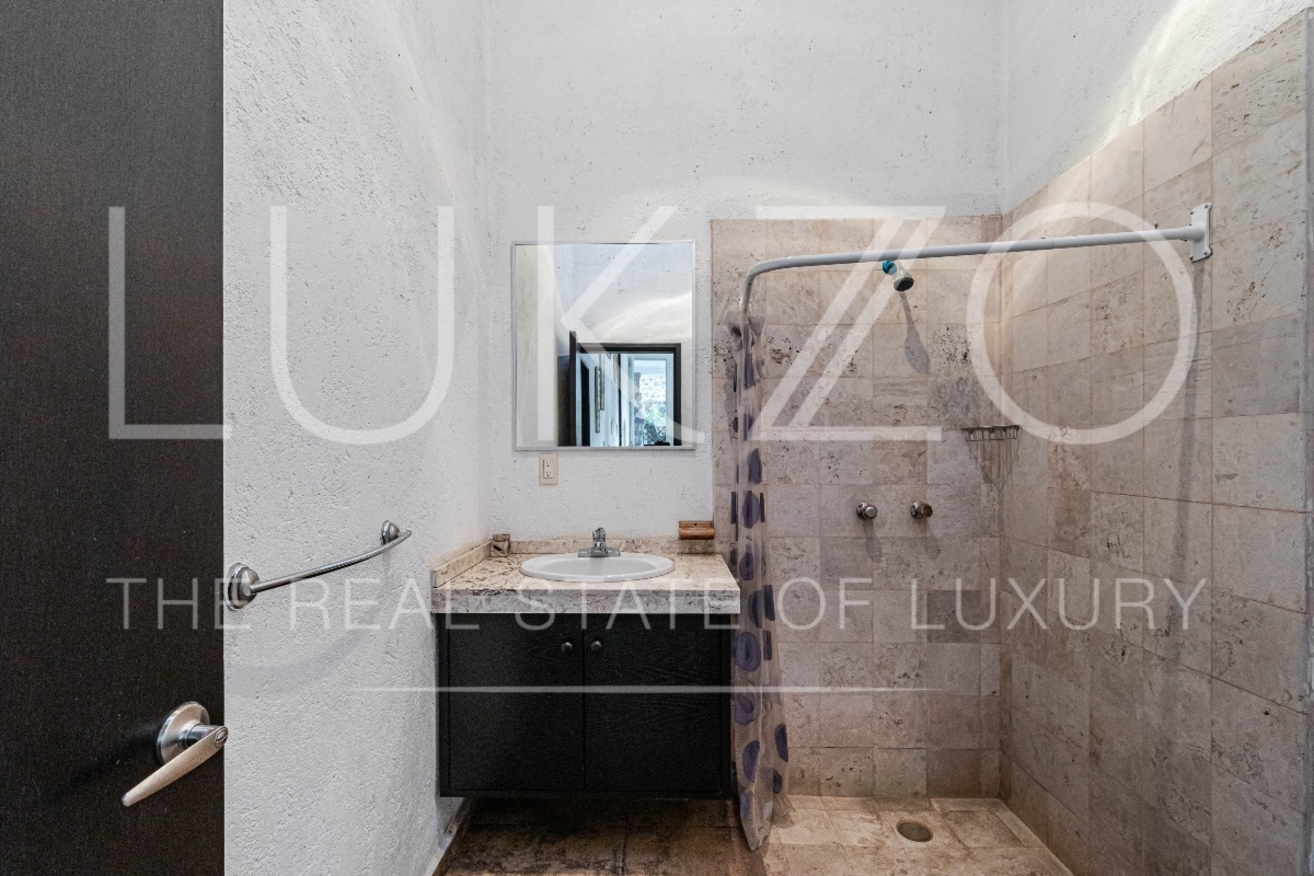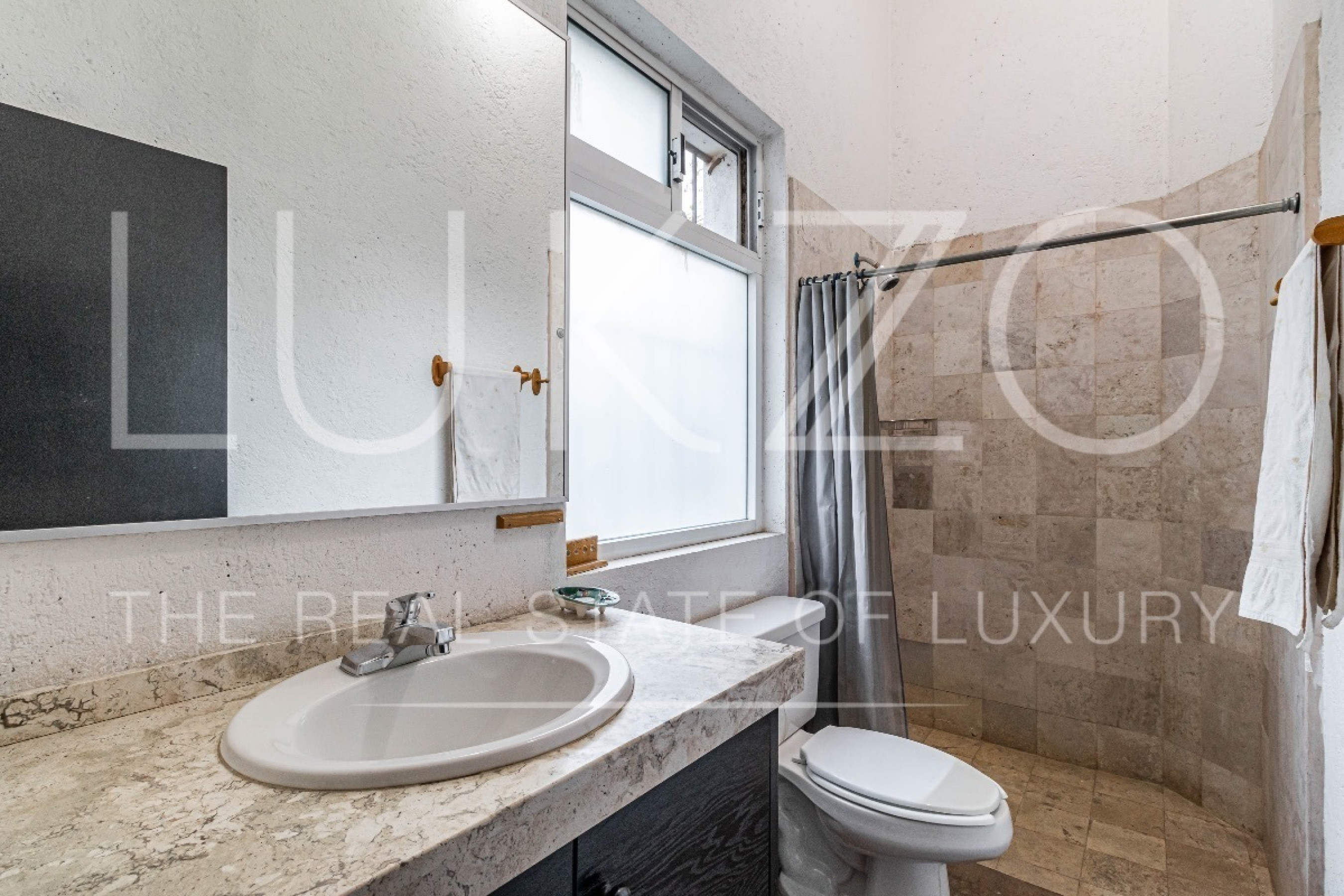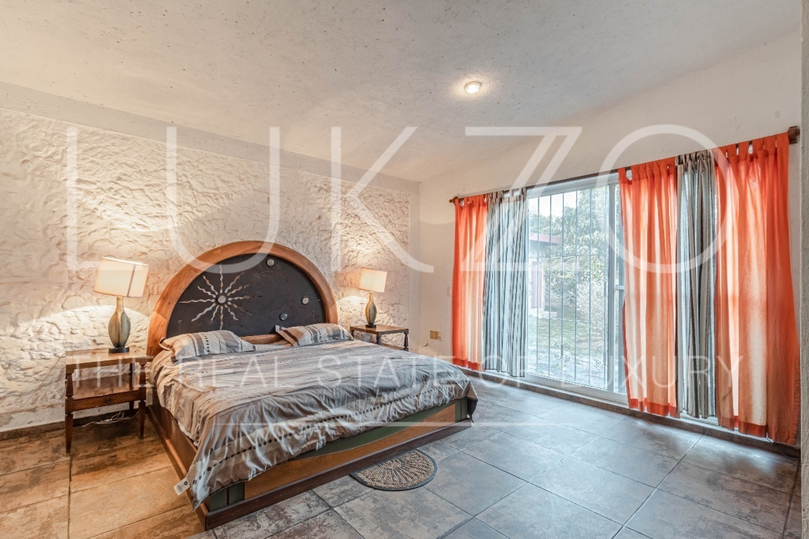 Al entrar, te recibirán un área de sala conectada por un desnivel al comedor y una cocina abierta con una práctica barra. La casa cuenta con dos recámaras, una de ellas con capacidad para dos camas Queen y la otra para una cama King y un clóset. Además, en el exterior de la propiedad, se encuentra un cuarto de servicio o tercera recámara con baño independiente.